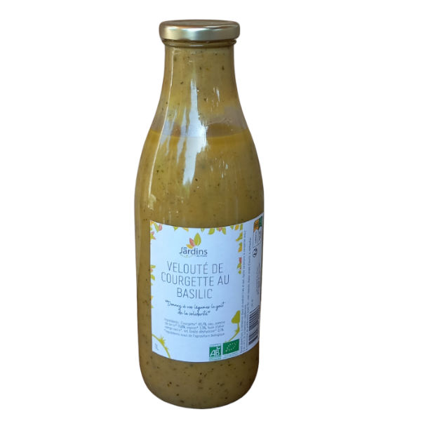 INGREDIENTS : Courgette* 49,7%, eau, pomme de terre* 11,8%, oignon*, huile d’olive vierge extra*, sel, basilic déshydraté* 0,1%.
